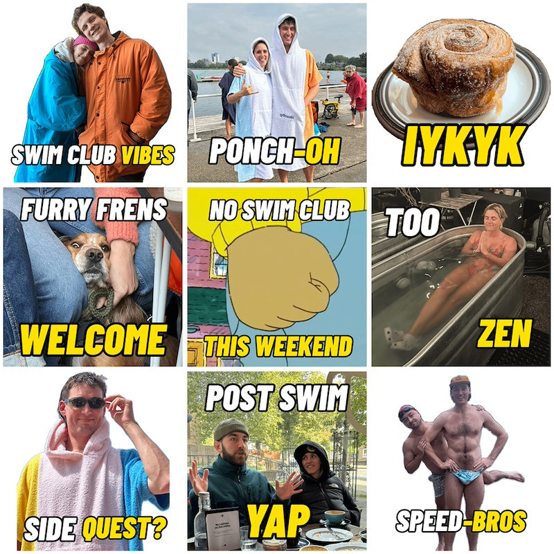 See above for our full calendar of social swims and side quests for AW ’25-26. Regular reminders are posted on our Insta / TikTok and our WhatsApp group chat.